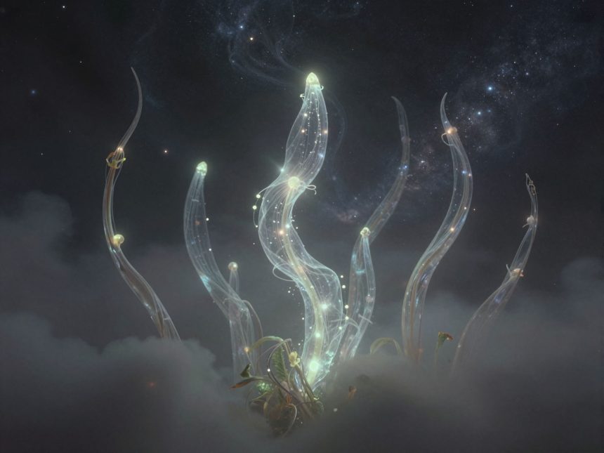 - Egy kék szár, amelyen apró, csillagszerű fények táncolnak: Ez a spirituális vezettetés és a magasabb erőktől kapott útmutatás szimbóluma. Arra utalhat, hogy az álmodó jó úton jár, és hogy támaszkodhat a kozmikus energiákra.